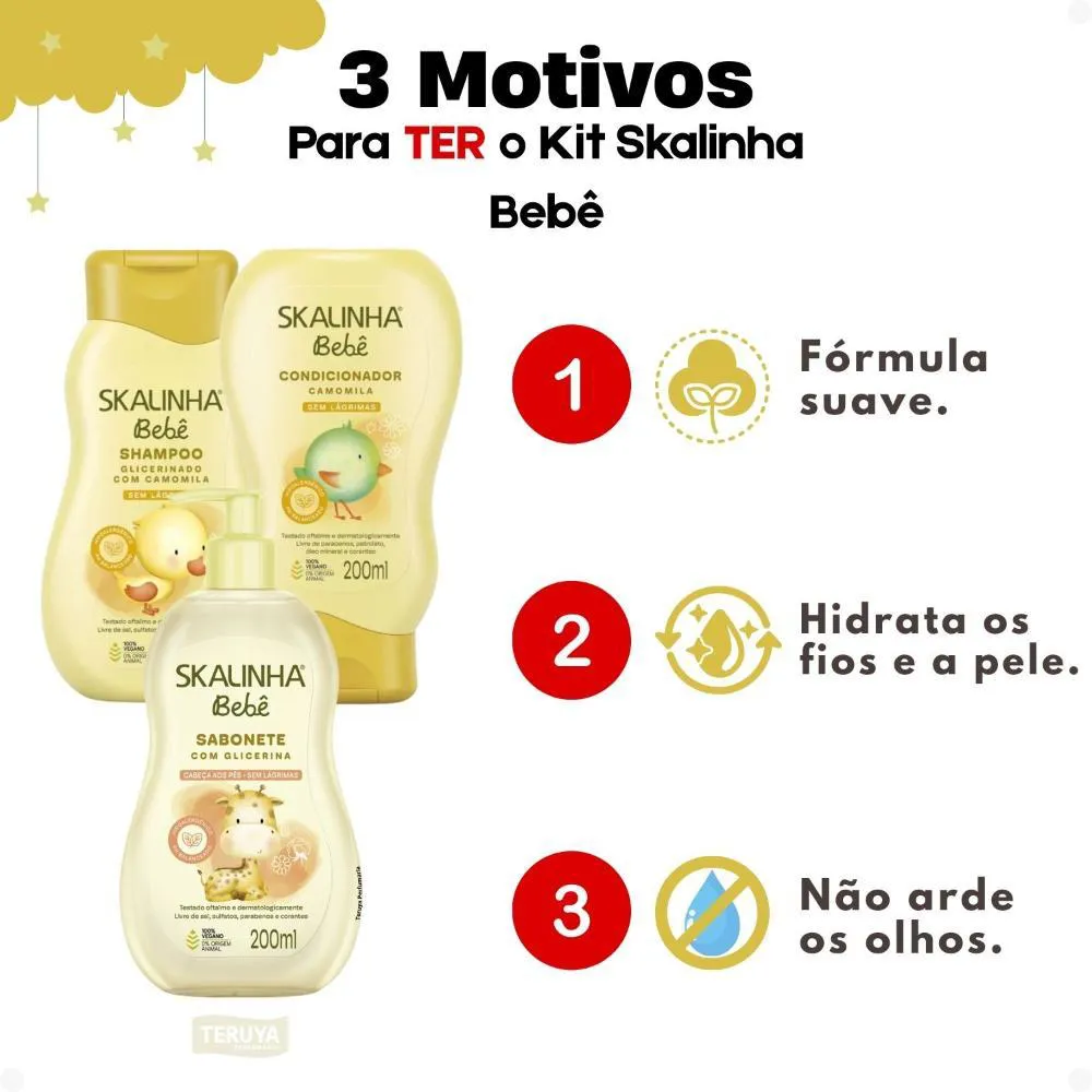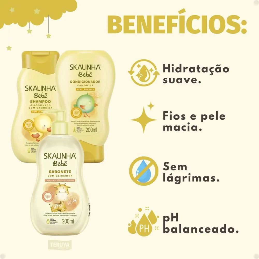 Kit Skalinha Bebê: shampoo e condicionador Camomila 200ml + Sabonete Liquido Com Glicerina 200ml
