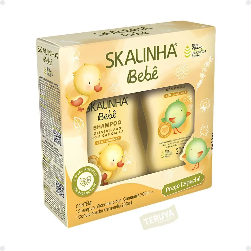 Kit Skalinha Bebê: Shampoo e Condicionador Camomila 200ml + Sabonete Líquido e Creme para Pentear 200ml