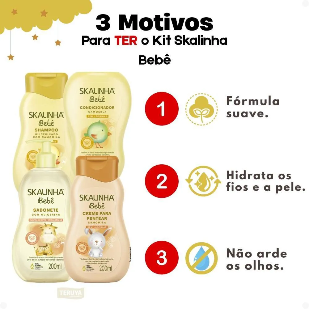 Kit Skalinha Bebê: shampoo e condicionador Camomila 200ml + Sabonete Líquido 200ml e Creme Para Pentear 200ml