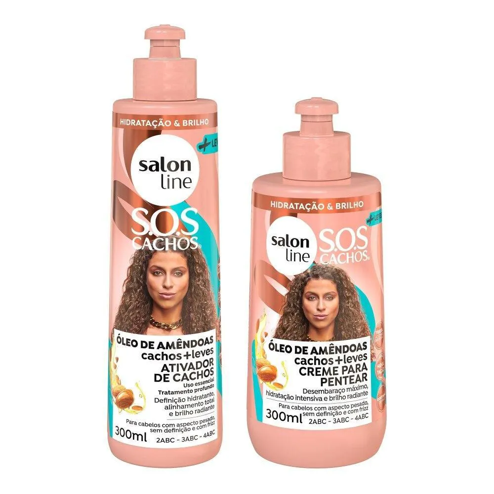 KIT SOS CACHOS ÓLEO DE AMENDôAS COM CREME PARA PENTEAR E ATIVADOR DE CACHOS