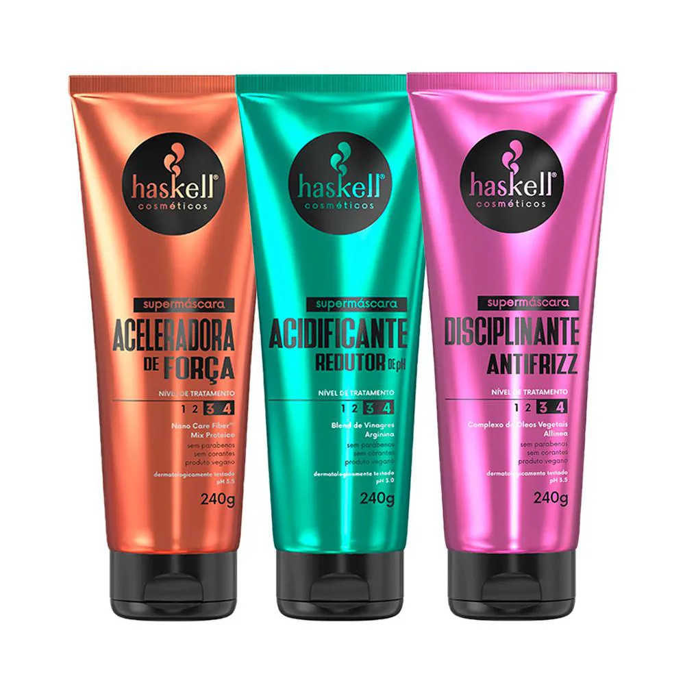 Kit Supermáscaras Haskell Aceleradora Acidificante Disciplinante 240g