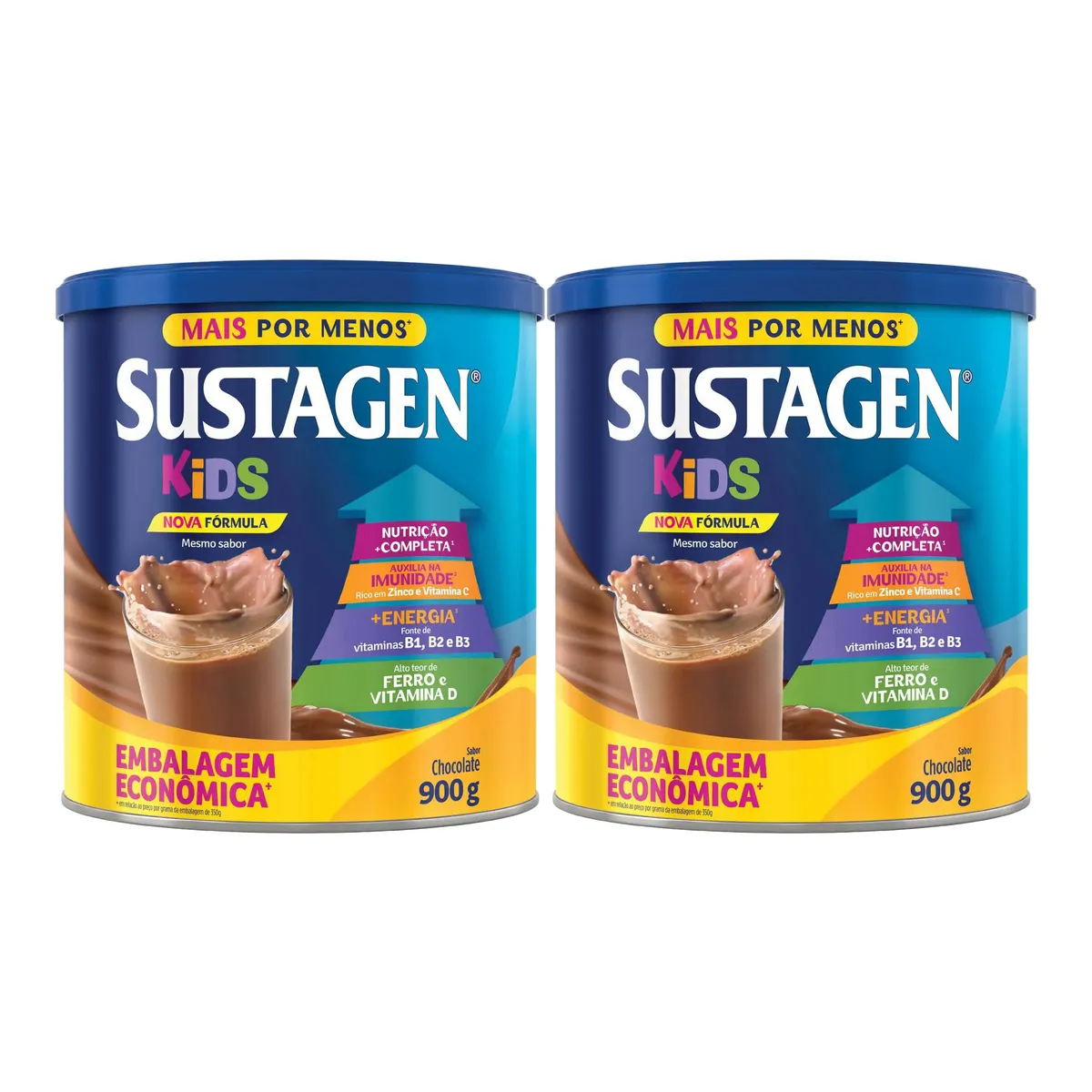 Kit Suplemento Infantil Sustagen Kids 3 anos Chocolate 900g 2 unidades
