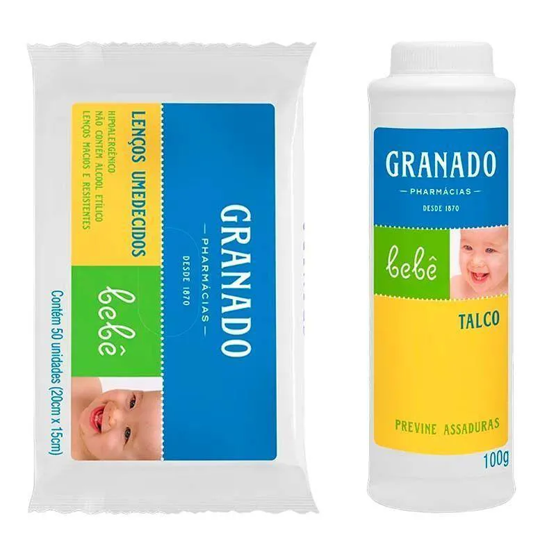 KIT TALCO BEBê 100G + LENçOS UMEDECIDOS GRANADO 50 UNIDADES