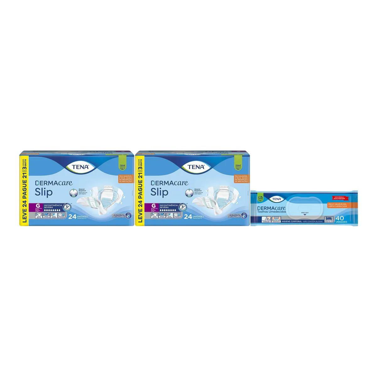 Kit Tena Dermacare Fralda Geriátrica Slip G 24 unidades 2 Pacotes + Toalha Umedecida Adulto 40 unidades