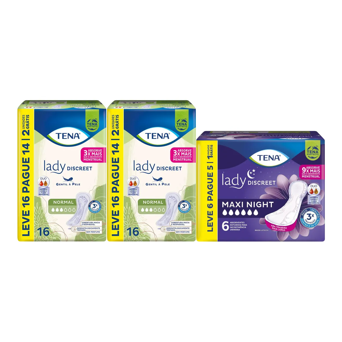 Kit Tena Lady Discreet Absorvente para Incontinência Urinária Normal Duo 16 unidades 2 Pacotes + Absorvente Noturno Feminino Maxi Night 6 unidades