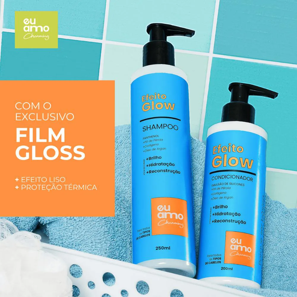 Kit Tratamento Argan Efeito Glow Completo Eu Amo Charming + Spray de Brilho