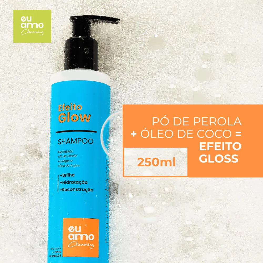 Anúncio composto por: 01unid. Shampoo Argan Efeito Glow Nutritivo Eu Amo Charming 250ML