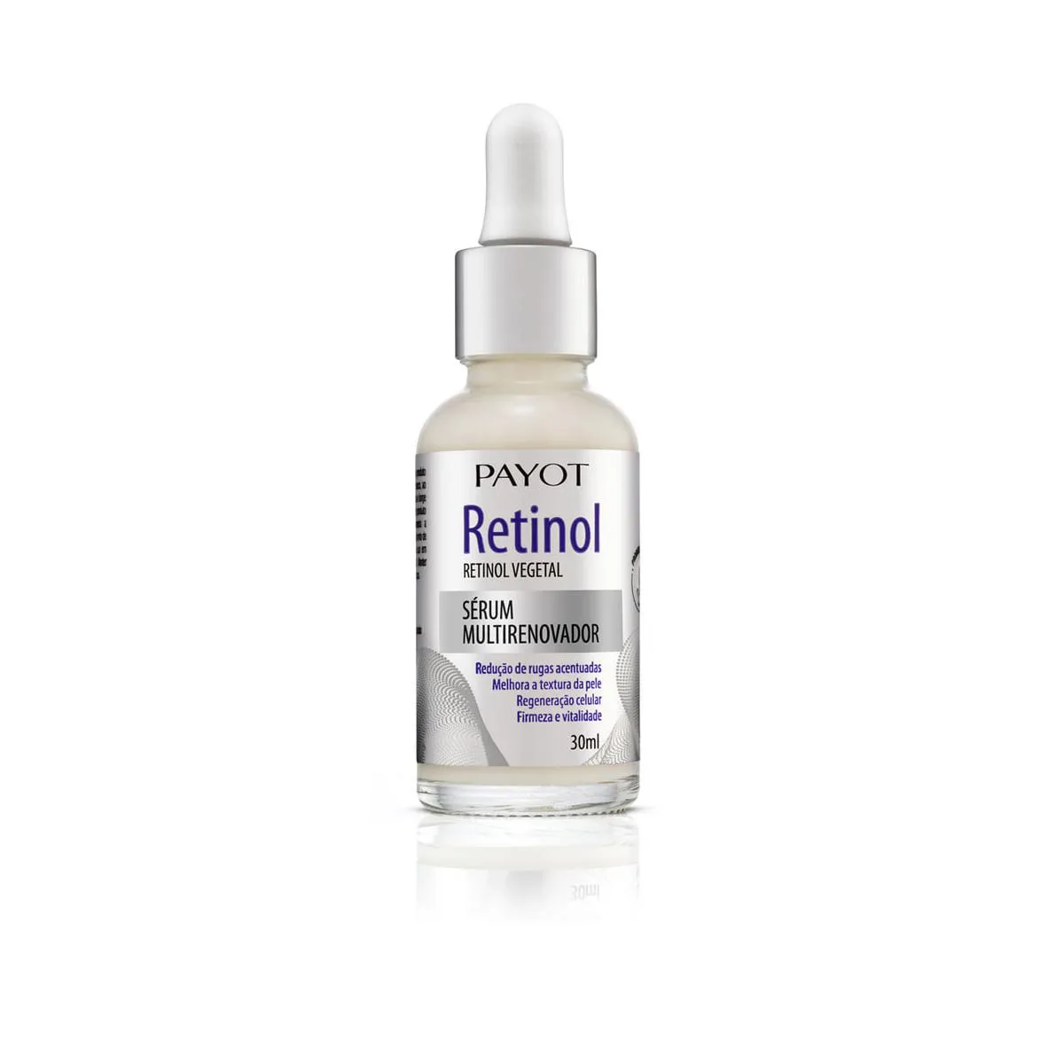 O Sérum Retinol Multirenovador Payot, tem fórmula multifuncional com associação exclusiva de ativos que ajudam na regeneração celular da face e área dos olhos. Auxilia na redução de rugas e linhas de expressão acentuadas. Estimula a produção natural do colágeno, melhora a firmeza, reduz poros dilatados, proporcionando ação completa de rejuvenescimento. Confere melhora da textura e aspecto geral da pele. Utilizamos um ativo de origem vegetal (Phyto-Retinol), que não possui os efeitos adversos do retinol tradicional. Sem parabenos. Produto Vegano. Livres de ingredientes de origem animal e não testado em animais. Dermatologicamente e Oftalmologicamente testado Para todos os tipos de pele Hipoalergênico