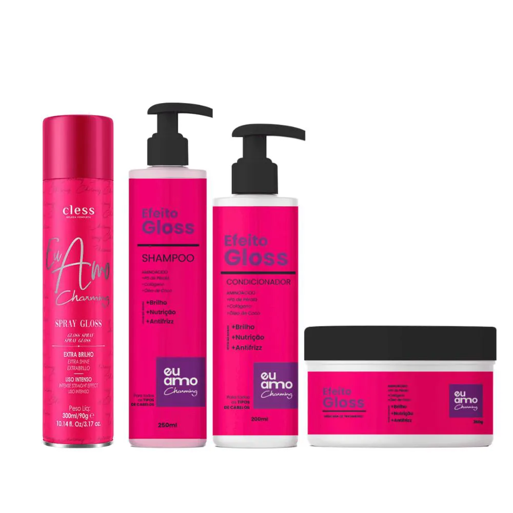 Kit Tratamento Efeito Gloss Completo Eu Amo Charming + Spray de Brilho