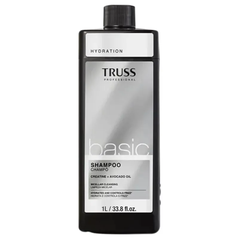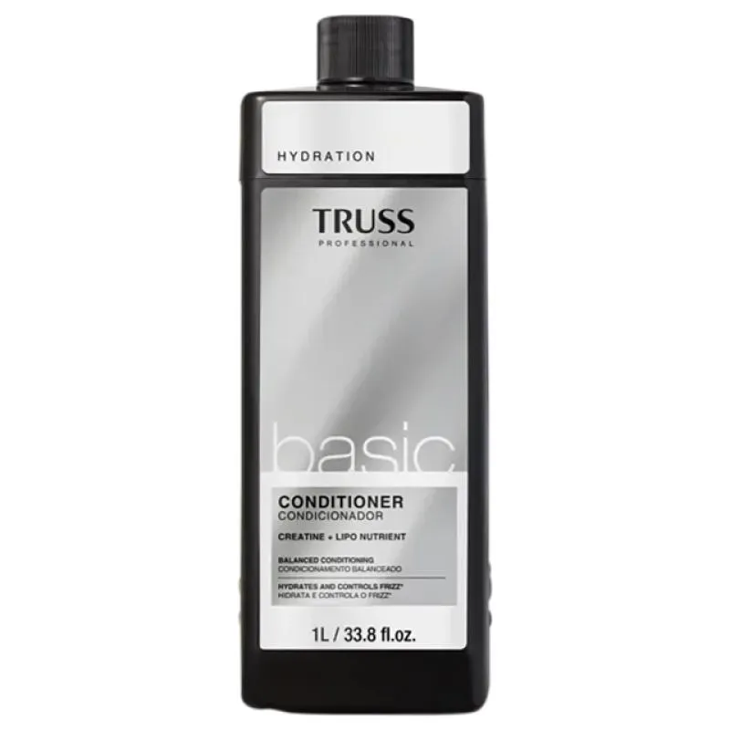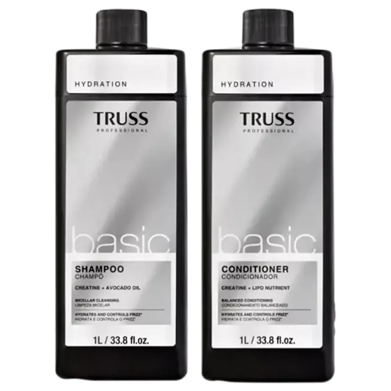 TRUSS Basic - Shampoo 1L: minimiza os efeitos do envelhecimento capilar, atua como reparador e proporciona brilho intenso, maciez e melhor penteabilidade. TRUSS Basic - Condicionador 1L: hidrata, nutre, repõe o brilho, além de prevenir o ressecamento.