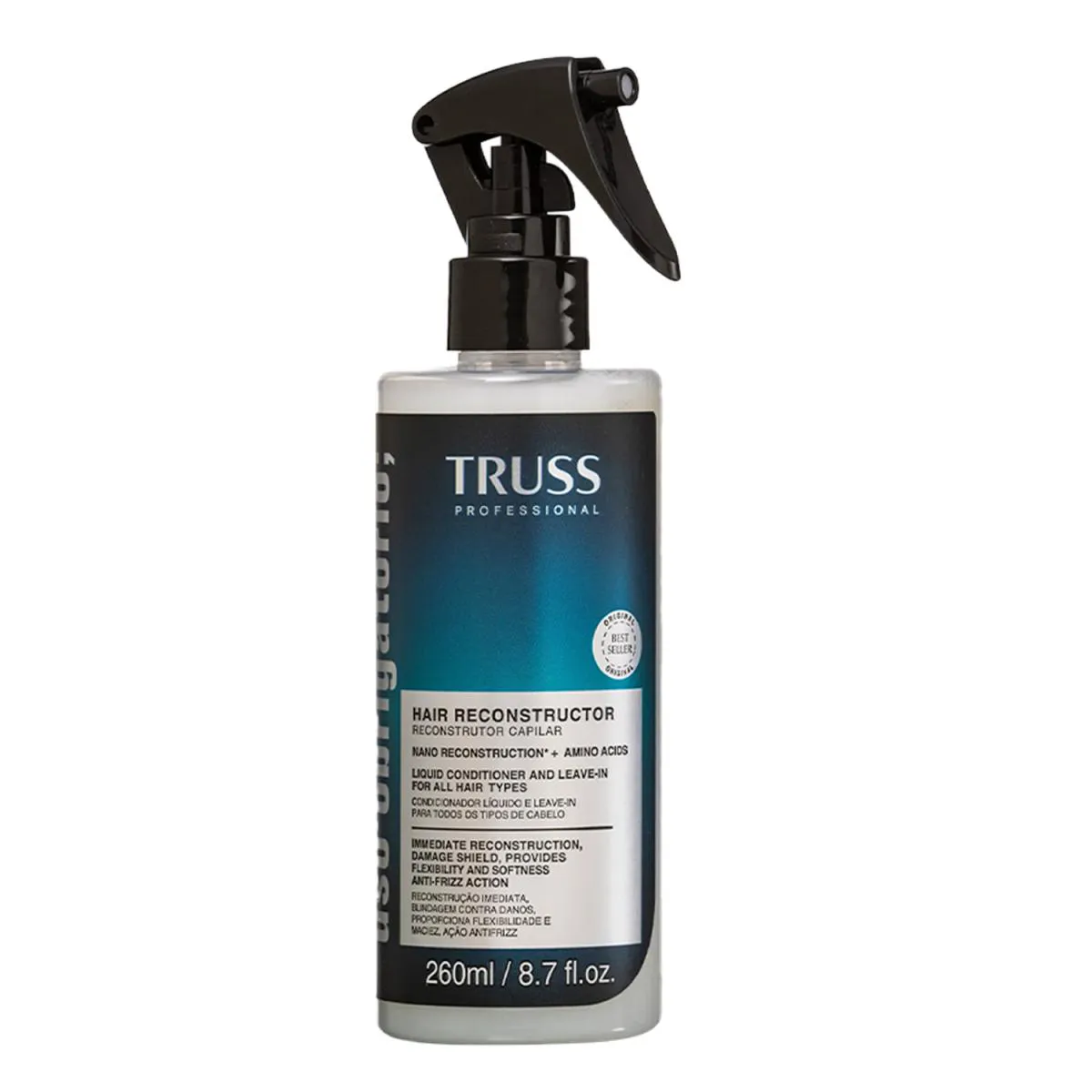 - Reconstrutor capilar que fortalece fios fragilizados.