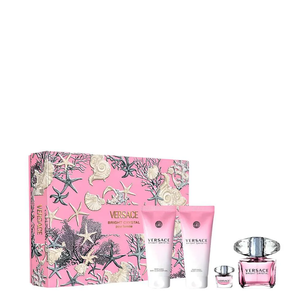 Kit Versace Bright Crystal Feminino - Edt 90Ml + 5Ml + Bl 100Ml + Sg 100Ml