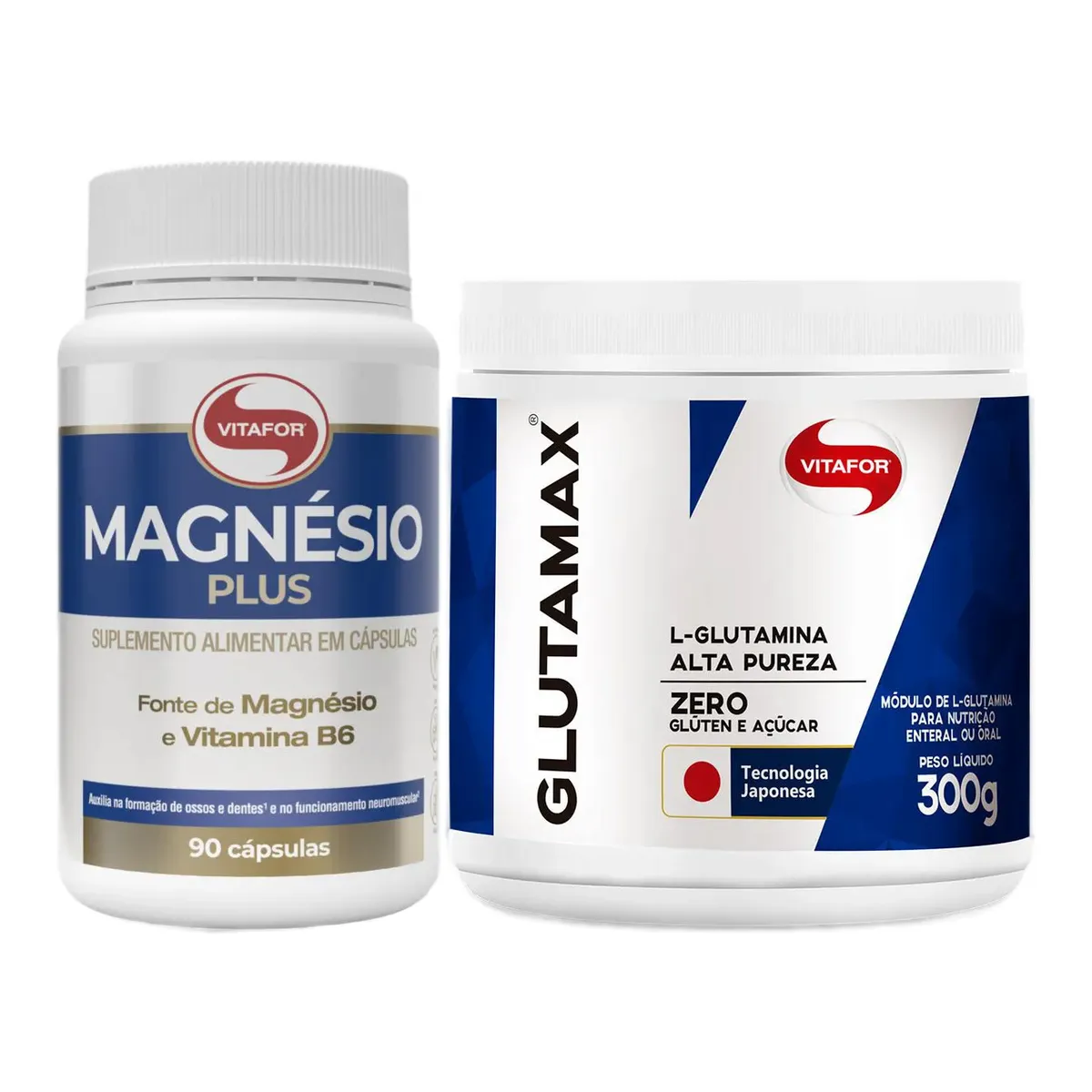 Kit Vitafor Magnésio Plus 90 cápsulas + L-Glutamina Glutamax Zero Glúten Zero Açúcar 300g