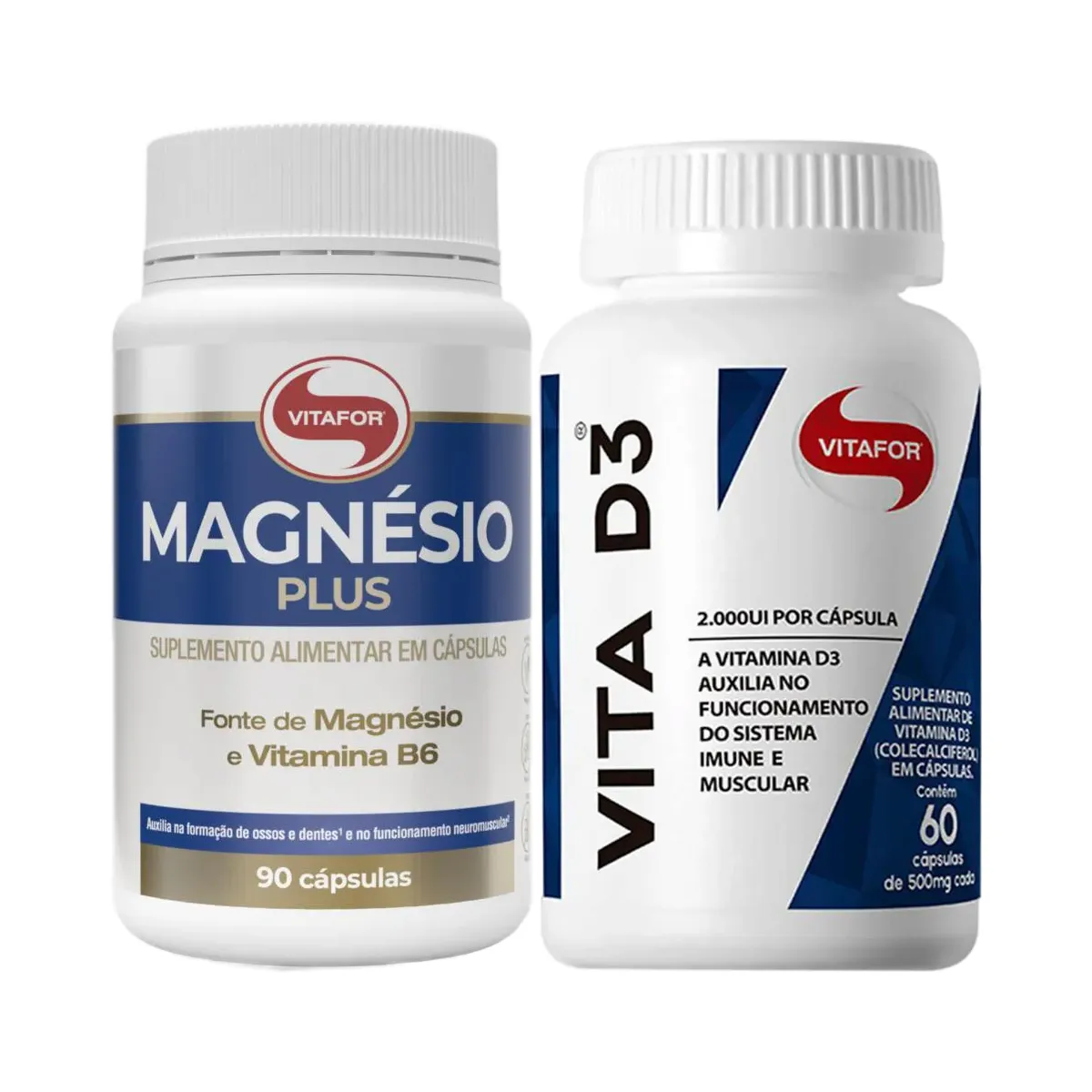 Kit Vitafor Magnésio Plus 90 cápsulas + Vitamina D 2.000UI 60 cápsulas