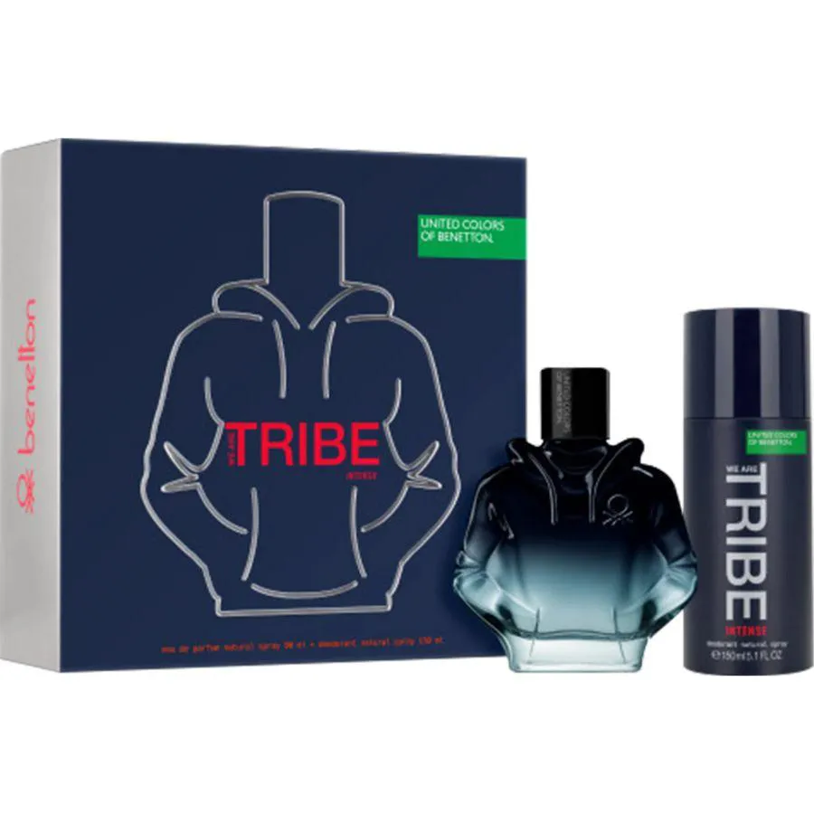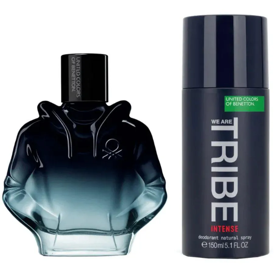 Conjunto masculino We Are Tribe Intense amadeirado aromático e desodorante Benetton. Deixe todos os limites para trás e viva a vida intensamente de maneira autêntica.