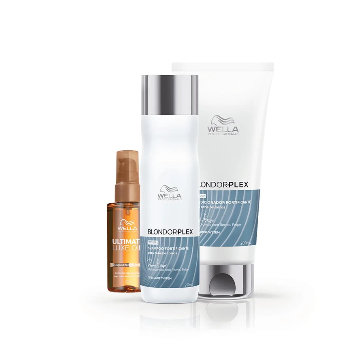 Kit Wella Blondorplex Luxe Oil - Shampoo 250Ml + Condicionador 200Ml + Óleo 30Ml