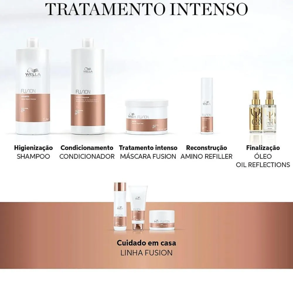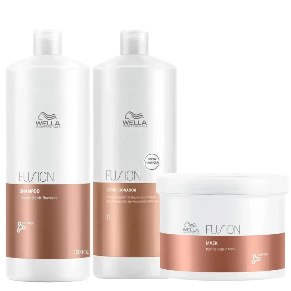 O kit profissional Wella Fusion Repair é um conjunto de produtos capilares desenvolvido para reparação profunda e tratamento intensivo dos cabelos, composto por shampoo, condicionador e máscara, destinado a restaurar, fortalecer e proteger os fios danificados.