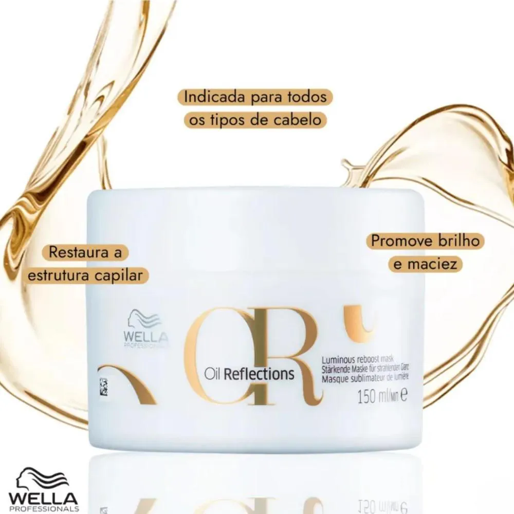 O kit Wella Oil Reflections reúne três itens de alta performance para uma rotina completa de limpeza nutritiva, tratamento profundo e finalização leve, entregando brilho intenso, suavidade imediata e nutrição equilibrada para todos os tipos de cabelo, incluindo fios opacos, secos, ressecados ou com frizz.O shampoo de 1 litro promove uma limpeza nutritiva que remove impurezas sem ressecar, preservando a hidratação natural. A tecnologia de luminosidade, associada ao extrato de chá branco, deixa os fios leves, soltos e com brilho renovado desde o primeiro uso.A máscara de 500g aprofunda o tratamento com um blend luxuoso de óleos, como camélia e macadâmia, que repõem lipídios essenciais, reduzem o frizz, alinham as cutículas e promovem brilho espelhado. Sua textura cremosa envolve a fibra capilar para restaurar maciez, disciplina e vitalidade.O óleo Oil Reflections Light de 30ml finaliza o cuidado com um toque ultraleve que controla o frizz e potencializa a luminosidade sem pesar, sendo ideal para cabelos finos ou que acumulam oleosidade facilmente. Ele complementa o tratamento ao adicionar proteção, sedosidade e brilho imediato.A sinergia entre os três itens potencializa a saúde da fibra capilar, garantindo fios mais alinhados, nutridos, disciplinados e com acabamento sofisticado. Perfeito para uso doméstico prolongado devido ao alto volume, ou para uso profissional em salões de beleza.