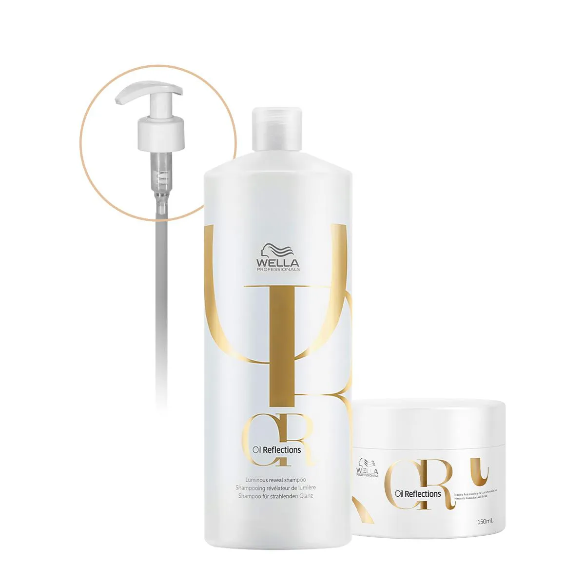Kit Wella Professionals Oil Reflections Shampoo Máscara 150 Válvula Pump (3 Produtos)