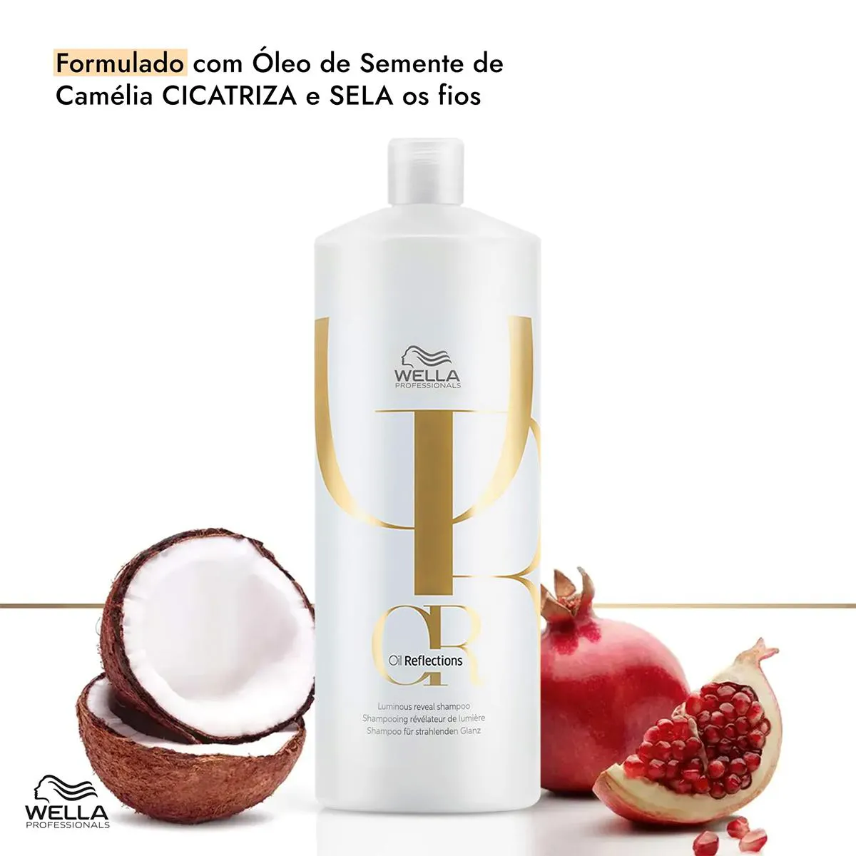 O Wella Professionals Oil Reflections Luminous Reveal Shampoo 1L é um produto de limpeza capilar que promove lavagem suave e eficaz, preservando a cor dos cabelos e protegendo as cutículas contra radicais livres.