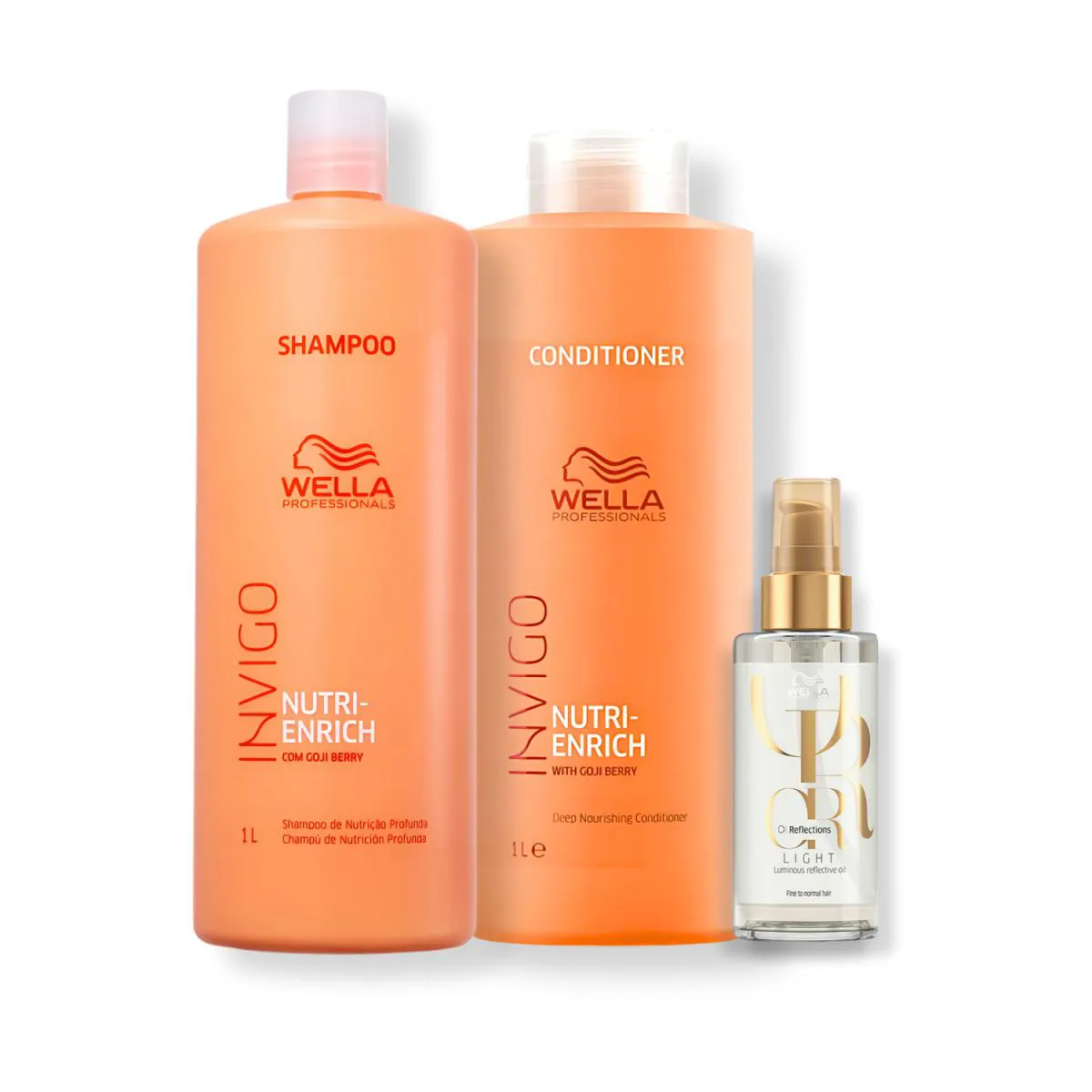 Kit Wella Professionals Shampoo 1L , Condicionador 1L Nutri-Enrich + Óleo Light 100Ml Oil Reflections