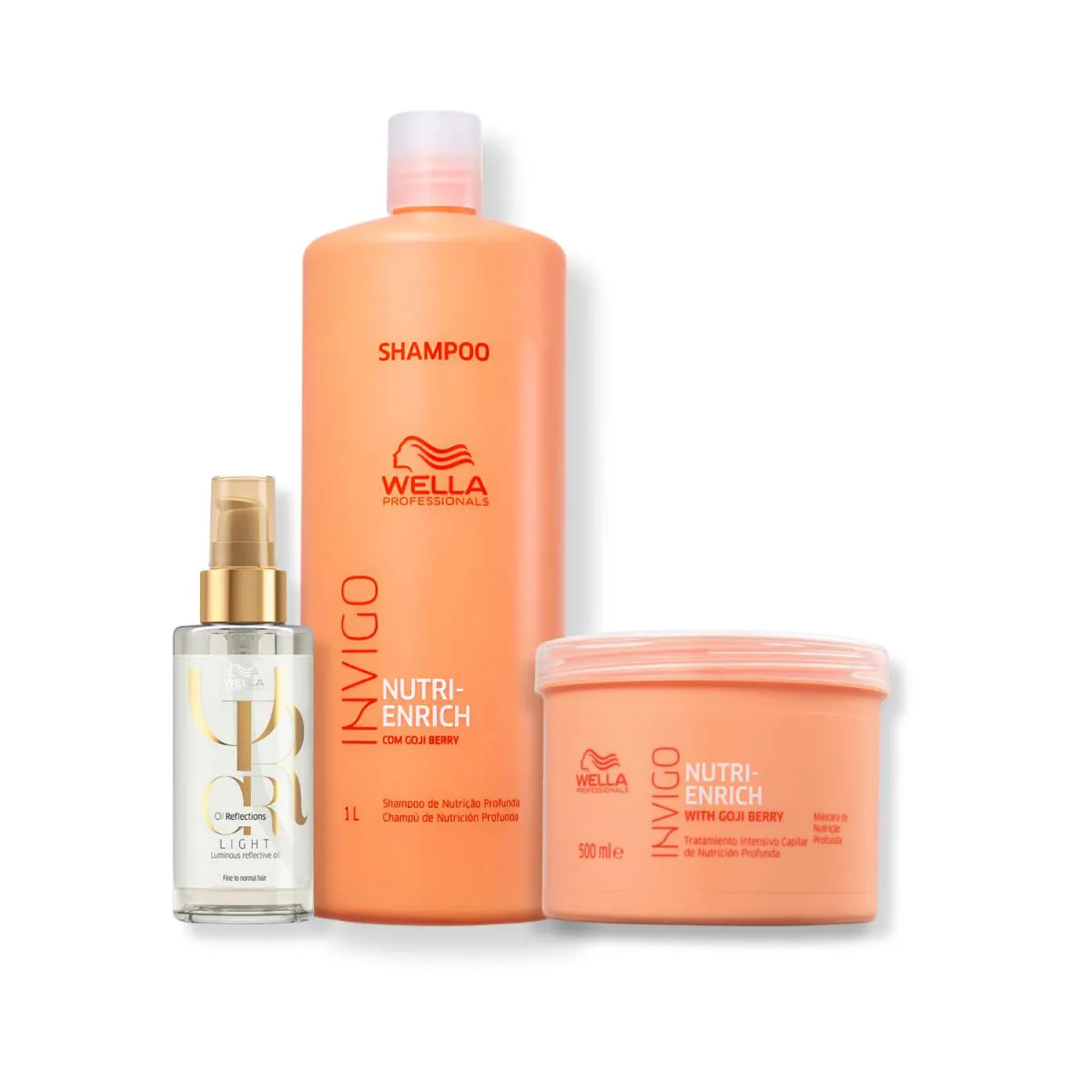 Kit com 3 Produtos Wella Nutri-Enrich shampoo , máscara e Óleo Light para Cabelos sem Brilho