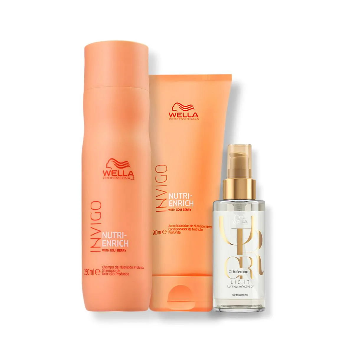 Kit Wella - Shampoo 250Ml e Condicionador 200Ml Nutri-Enrich + Óleo 100Ml Oil Reflections Light