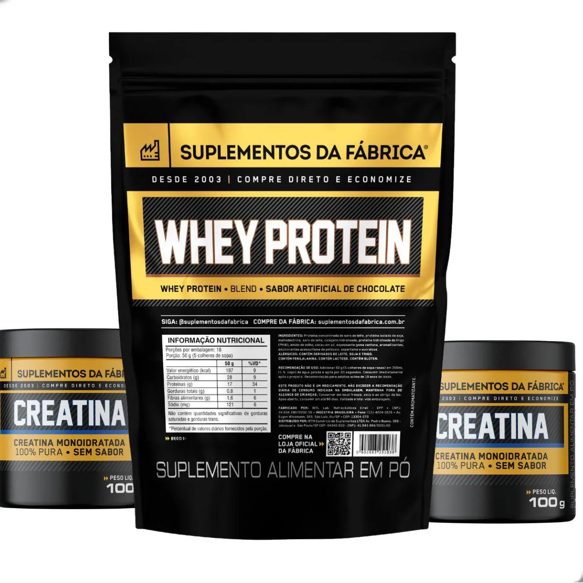 O Kit Whey ISO Blend 2Kg + 2 creatina 100g Suplementos da Fábrica foi desenvolvido para quem busca praticidade, economia e suplementos produzidos com matéria-prima importada. O Whey ISO Blend reúne proteína concentrada e isolada, trazendo peptídeos naturalmente presentes no soro do leite, enquanto as duas unidades de Creatina 100g oferecem uma solução direta, pura e fácil de integrar à rotina. É um combo pensado para consumidores que valorizam qualidade real sem pagar por intermediários ou embalagens exageradas.
