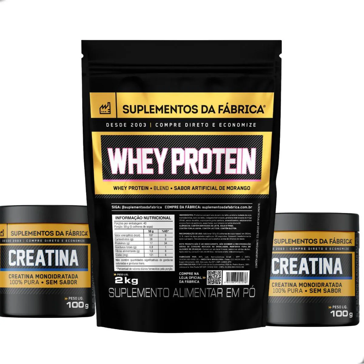 Kit Whey Iso Blend 2Kg + 2 Creatina 100G Suplemento da Fabrica Morango