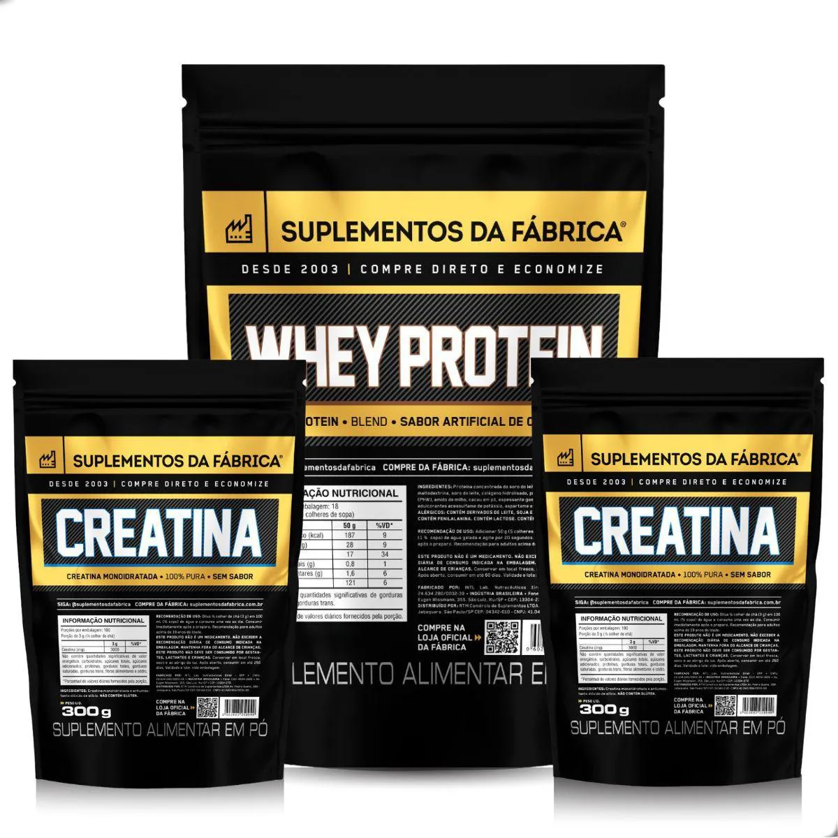 Kit Whey Iso Blend 2Kg + 2 Creatina 300G Suplemento da Fabrica Chocolate