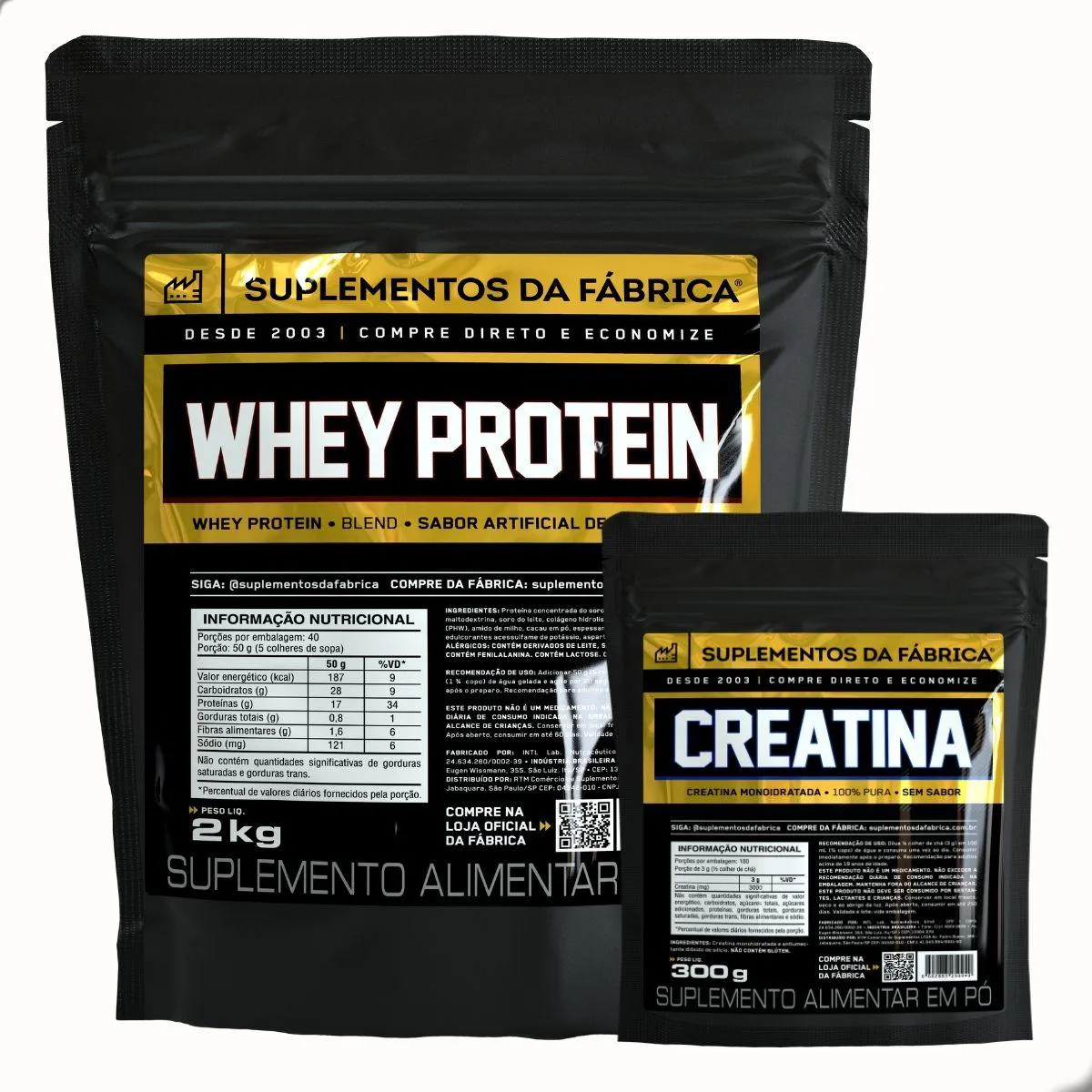 Kit Whey Iso Blend 2Kg + Creatina 300G Suplemento da Fabrica Chocolate