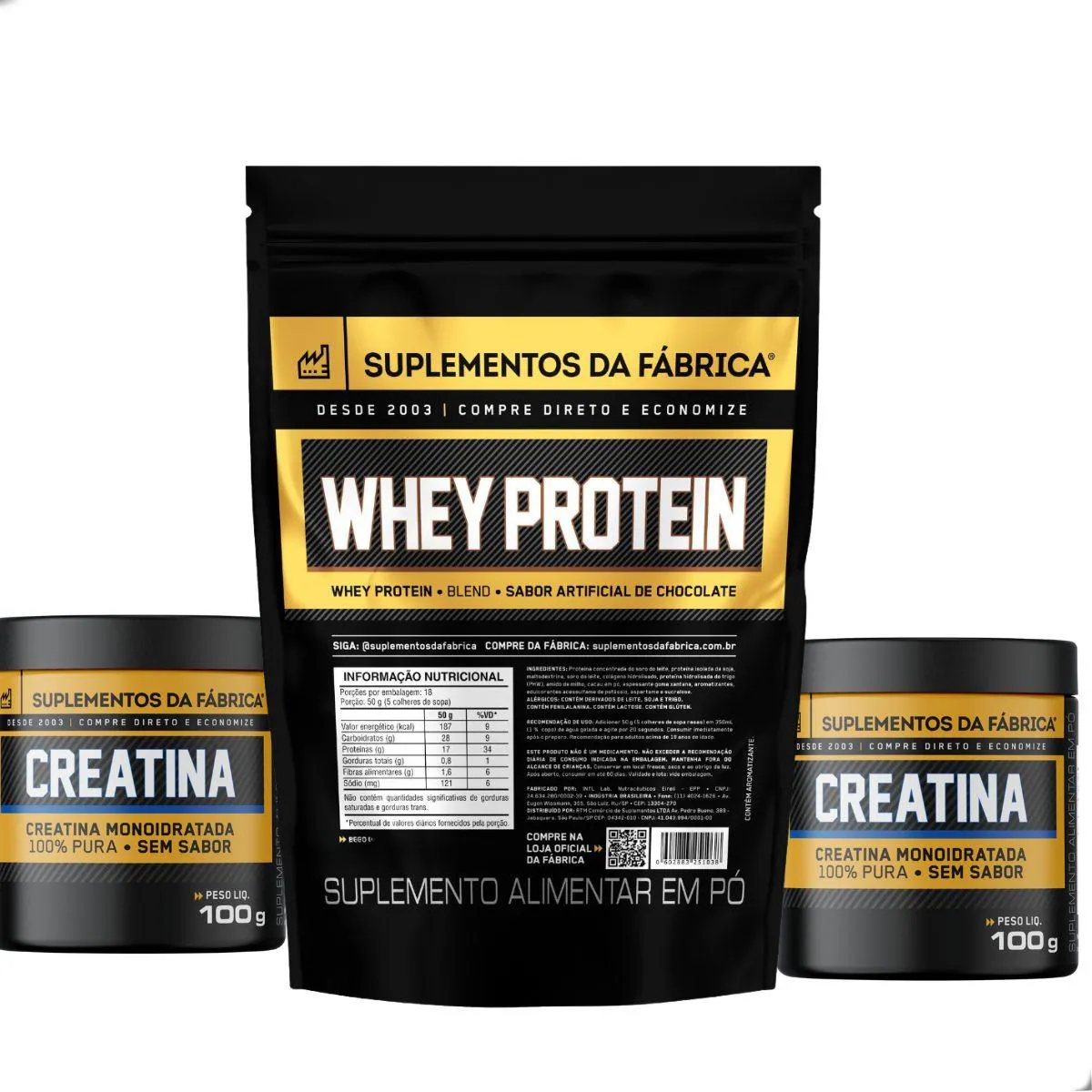 O Kit Whey ISO Blend 900g + 2 creatina 100g Suplementos da Fábrica foi desenvolvido para quem busca praticidade no dia a dia, boa relação custo benefício e acesso direto a suplementos produzidos com matérias primas importadas. O conjunto reúne um whey proteico que preserva aminoácidos e peptídeos naturalmente formados no processo de filtragem, acompanhado por duas unidades de creatina monohidratada pura em embalagens de 100g. A proposta reflete o conceito central da marca, que entrega qualidade real a preço justo por operar sem intermediários, mantendo foco em nutrição equilibrada, bem estar e simplicidade.