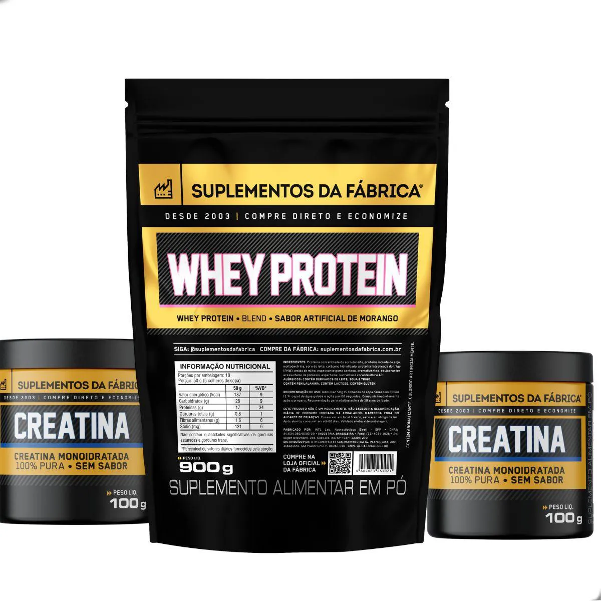 Kit Whey Iso Blend 900G + 2 Creatina 100G Suplemento da Fabrica Morango