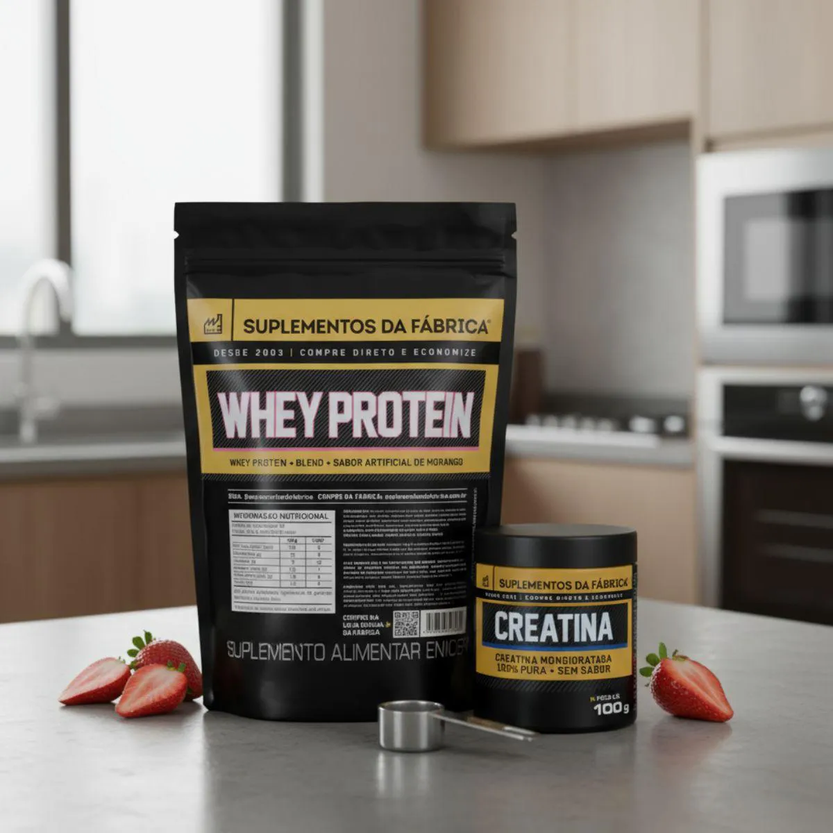 Como usar o Kit Whey Iso Blend 900G + 2 Creatina 100G Suplemento Da Fabrica Morango?