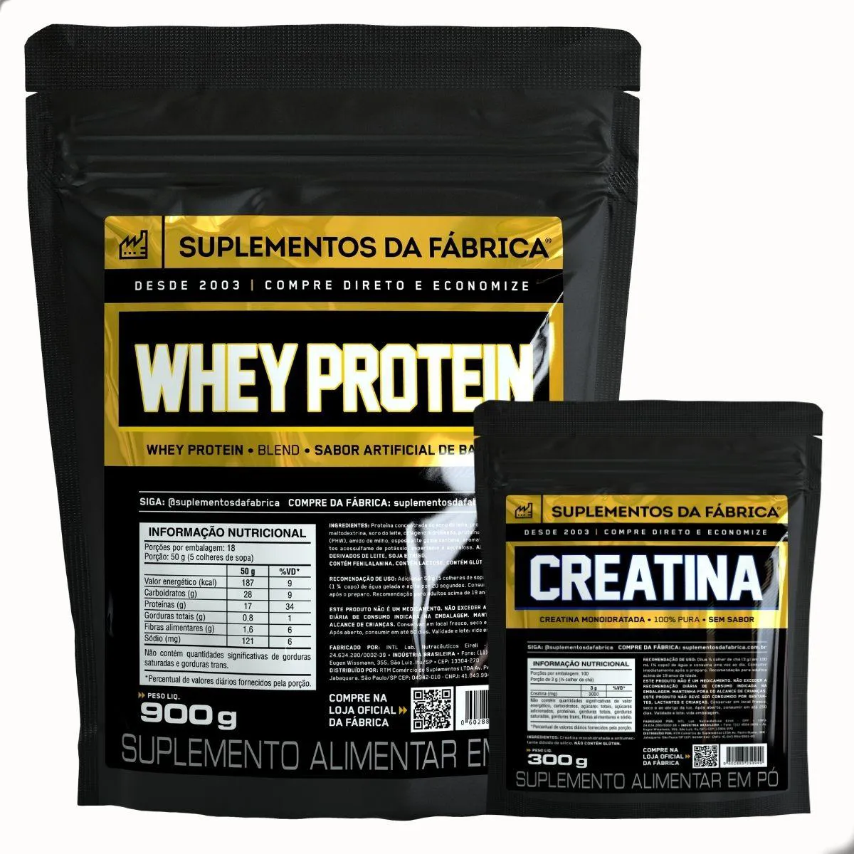 Kit Whey Iso Blend 900G + Creatina 300G Suplemento da Fabrica Baunilha