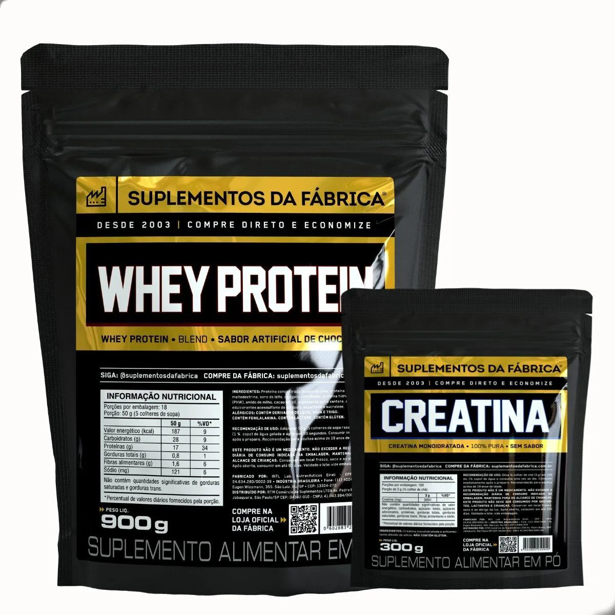 - Suplementação nutricional prática e acessível com combinação de whey protein e creatina.