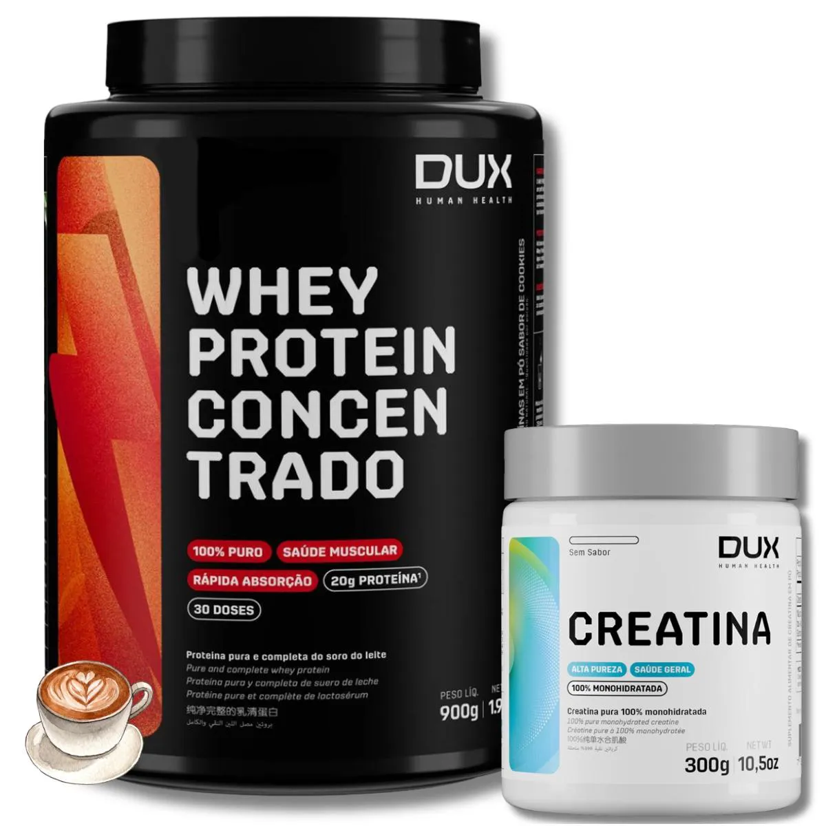 Kit whey protein Concentrado 900g Cappuccino (sabor whey) + creatina 300g Sem Sabor — Dux Human Health