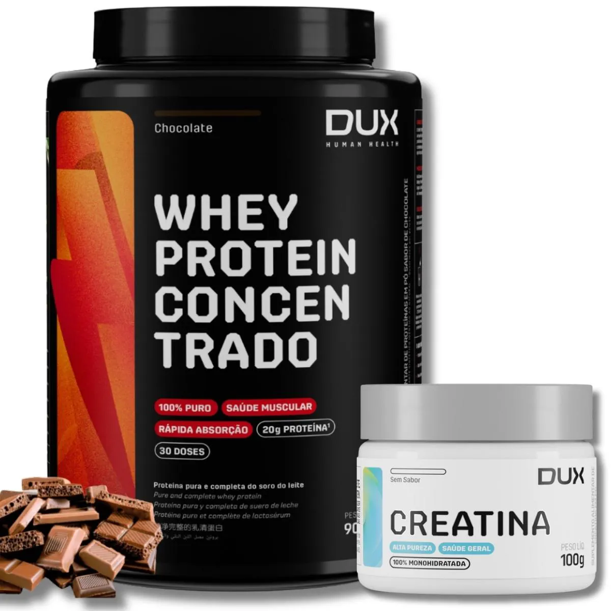 Kit whey protein Concentrado 900g chocolate (sabor whey) + creatina 100g Sem Sabor — Dux Human Health