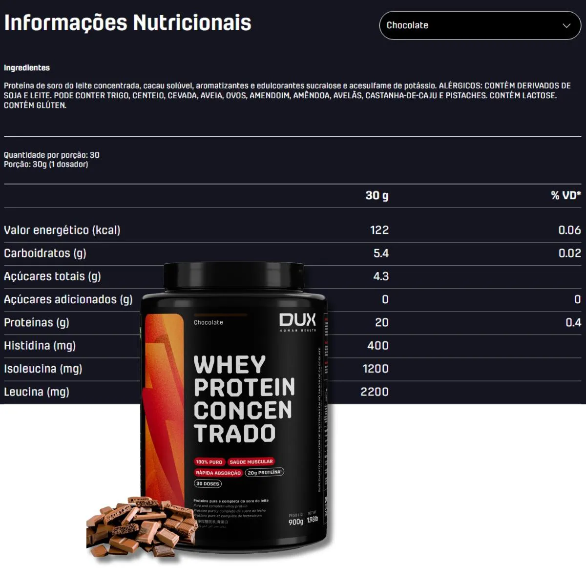 - Whey Concentrado de alto rendimento e custo-benefício com sabor chocolate