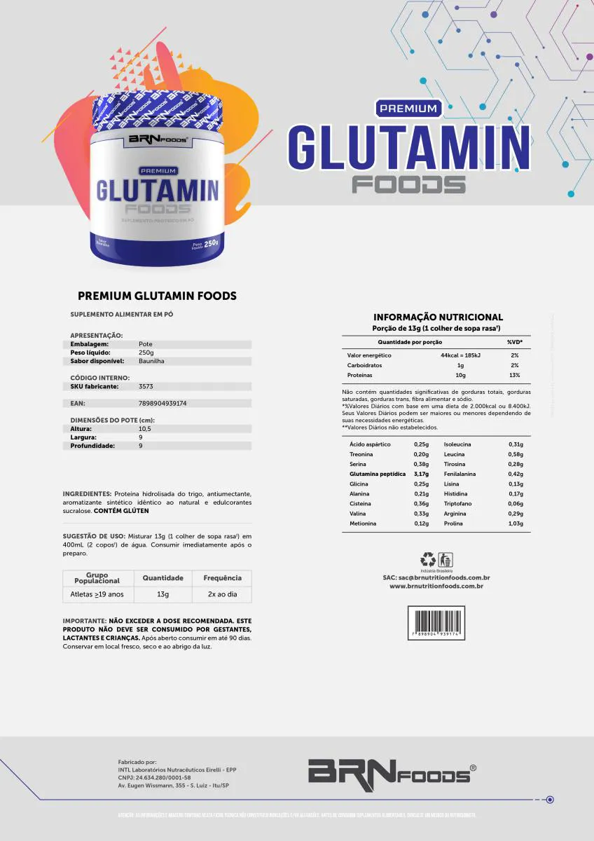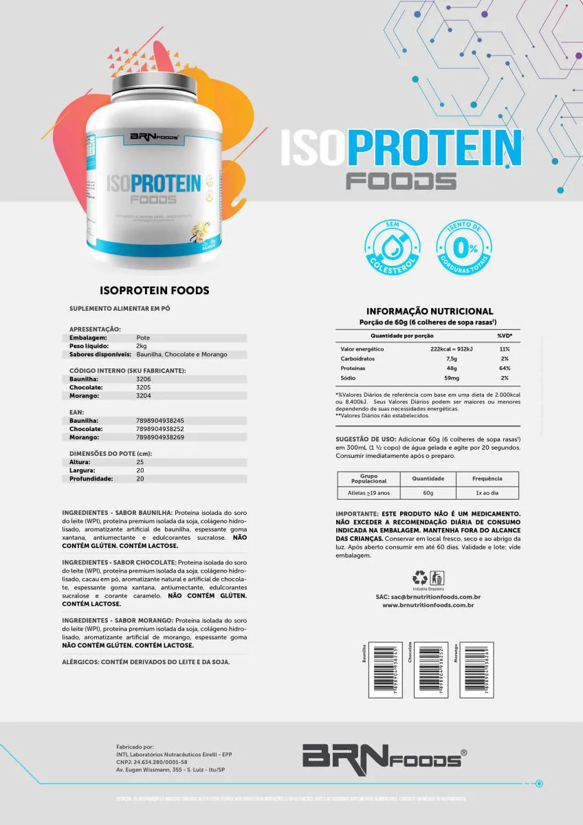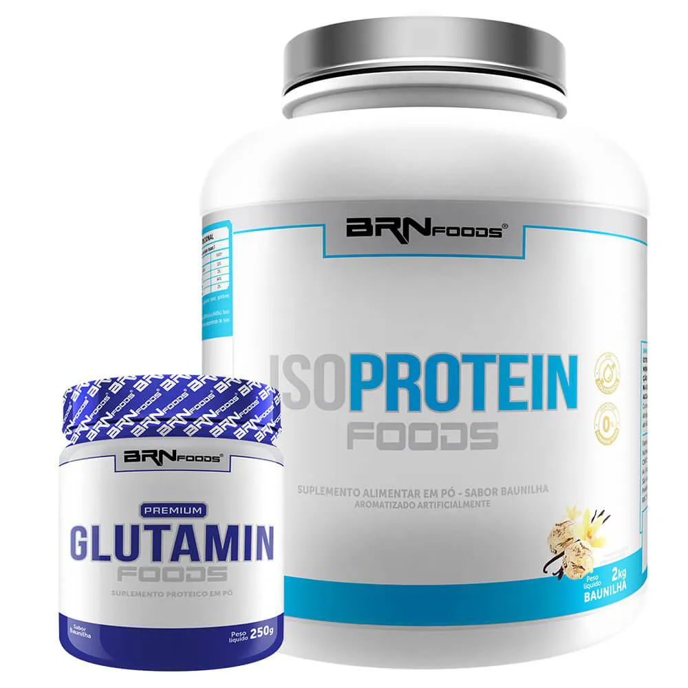 KIT WHEY PROTEIN ISO PROTEIN FOODS 2KG + GLUTAMINA 250G - BRN FOODS SABOR BAUNILHA