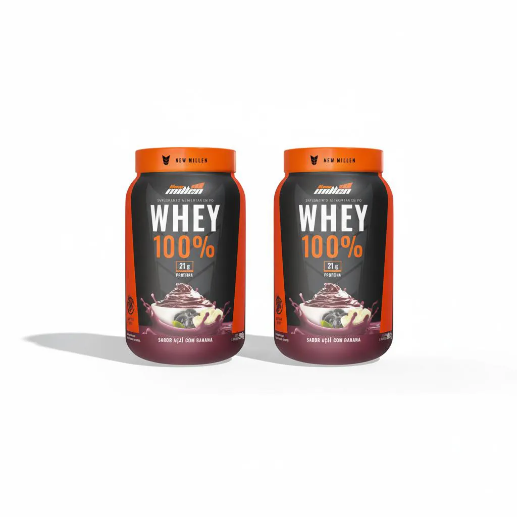 Kit2 Whey Protein 100% 21G Proteina Açai C Banana Pote 900G
