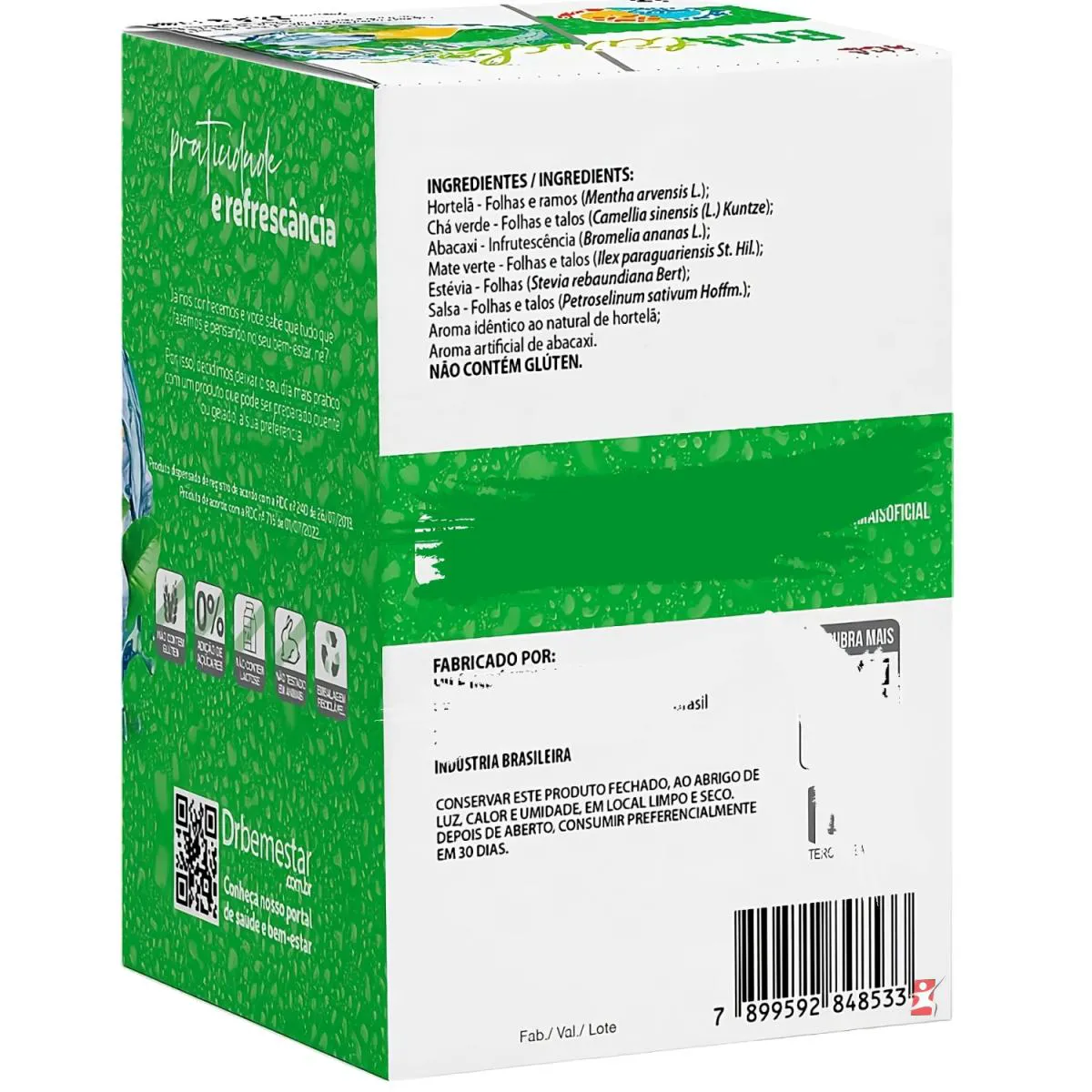Chá leve e digestivo com chá verde, mate verde, hortelã, abacaxi e sal-sa, perfeito para equilibrar a rotina.