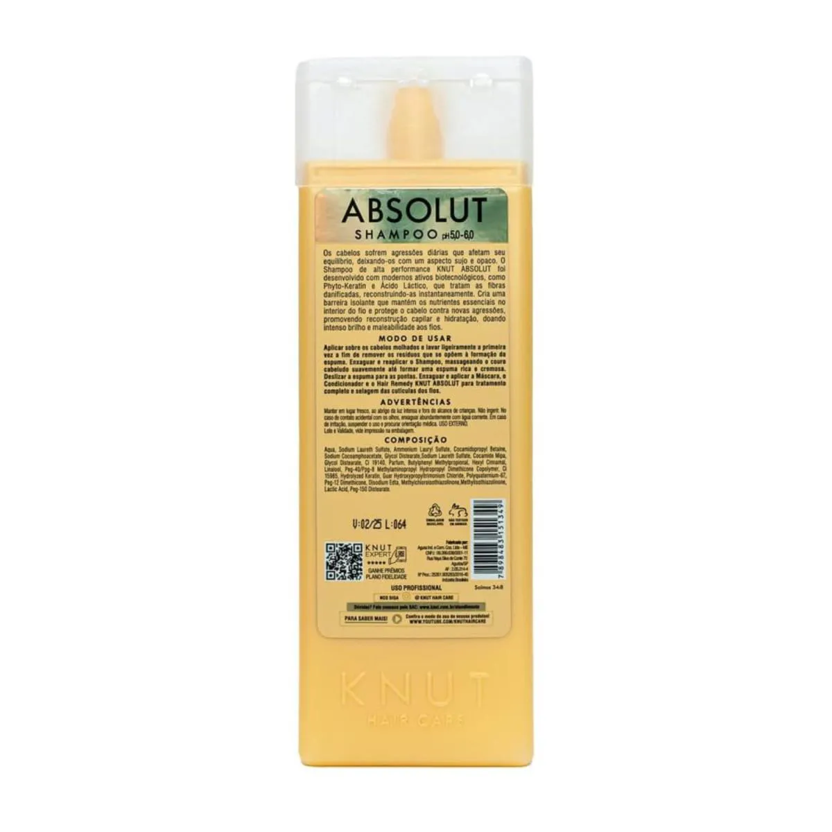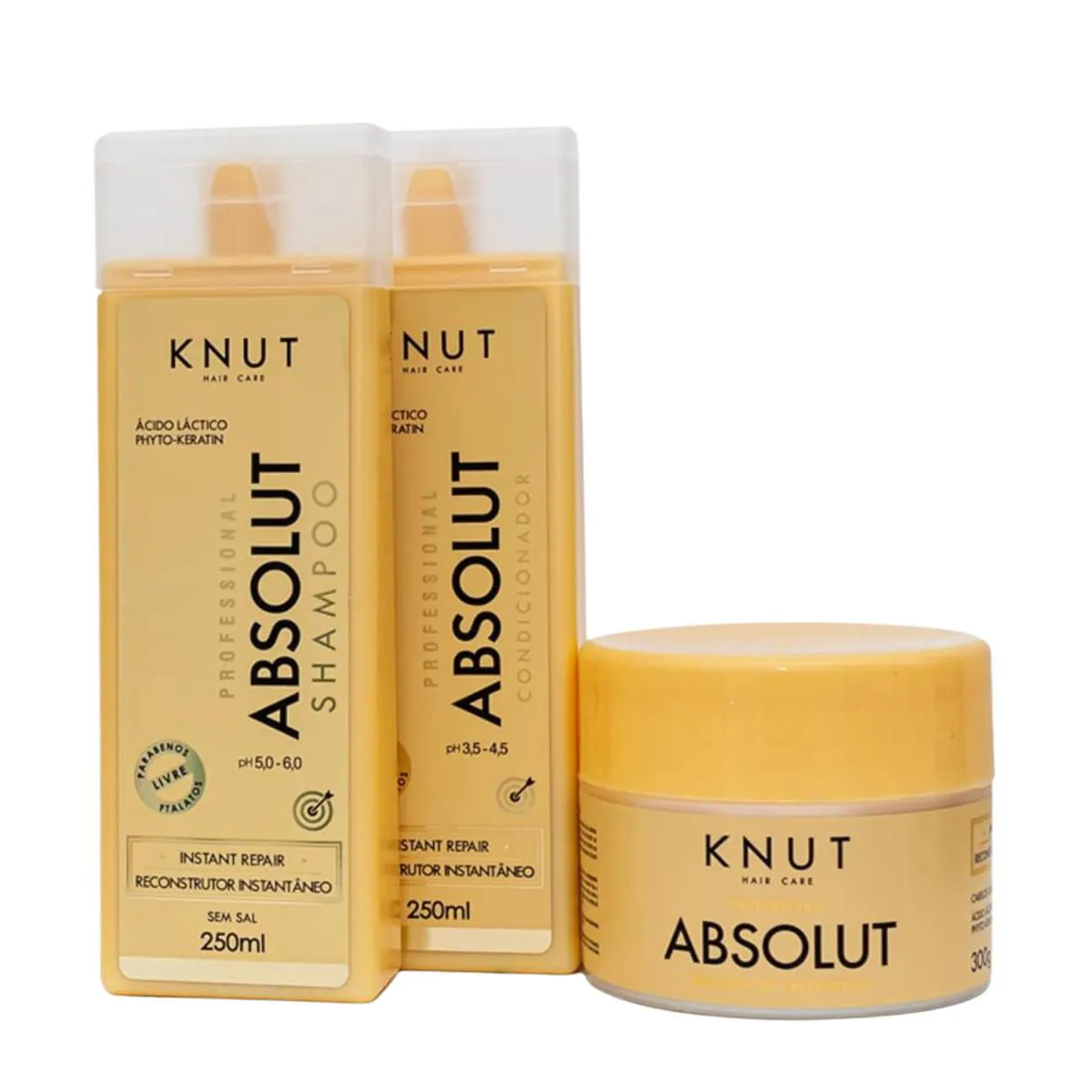 Os cabelos sofrem agressões diárias que afetam seu equilíbrio, deixando-os com um aspecto sujo e opaco. O shampoo de alta performance KNUT ABSOLUT foi desenvolvido com modernos ativos biotecnológicos, como Phyto-Keratin e Ácido Láctico, que tratam as fibras danificadas, reconstruindo-as instantaneamente. Cria uma barreira isolante que mantém os nutrientes essenciais no interior do fio e protege o cabelo contra novas agressões, promovendo reconstrução capilar e hidratação, doando intenso brilho e maleabilidade aos fios.