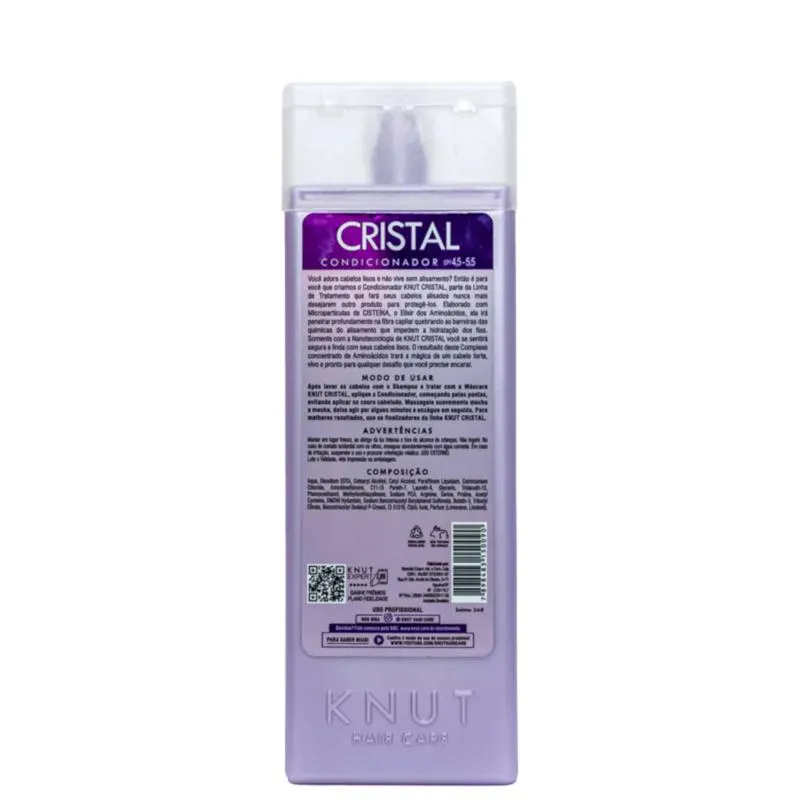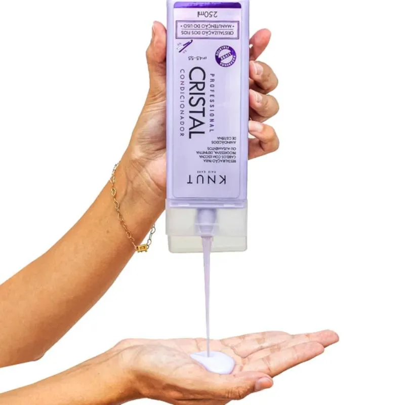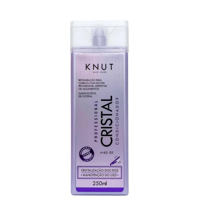 KNUT KIT CRISTAL shampoo 250ML + condicionador 250ML + máscara 300G Você adora cabelos lisos e não vivem sem alisamento? Então é para você que criamos o Condicionador KNUT CRISTAL, parte da linha de Tratamento que fará seus cabelos alisados nunca mais desejem outro produto para protegê-los. Elaborado com Micropartículas de CISTEÍNA, o Elixir dos Aminoácidos, ela irá penetrar profundamente na fibra capilar quebrando as barreiras das químicas do alisamento que impedem a hidratação dos fios. Somente com a Nanotecnologia de KNUT CRISTAL você se segura e linda com seus cabelos lisos. O resultado deste complexo concentrado de Aminoácidos trará a mágica de um cabelo forte, vivo e pronto para qualquer desafio que você precise encarar.