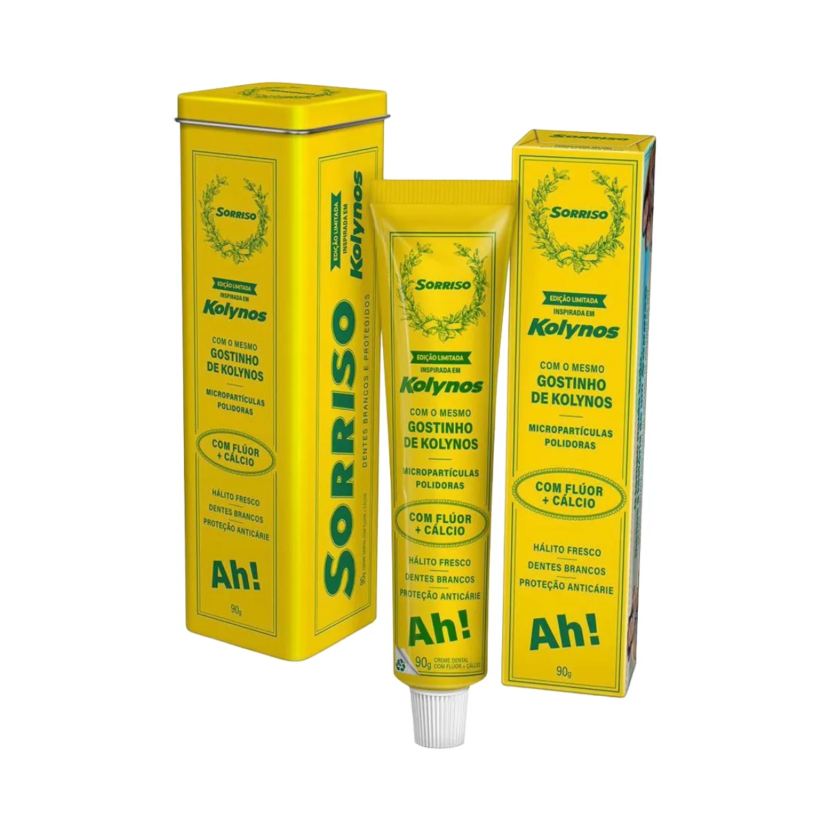 O Creme Dental Sorriso Edição Limitada Kolynos é uma versão especial que resgata o sabor clássico de 1917, trazendo refrescância e hálito fresco. Desenvolvido com micropartículas polidoras, ajuda a manter os dentes brancos e limpos, além de oferecer proteção anticárie para cuidar da saúde do seu sorriso. Sua edição em lata torna o produto ainda mais marcante e colecionável.