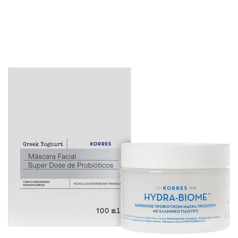 máscara facial para todos os tipos de pele. Korres Greek Yoghurt Probiótico proporciona hidratação duradoura para uma pele radiante, com frescor e protegida das agressões. Korres Greek Yoghurt Probiótico equilibra o microbioma da pele e fortalece sua barreira natural contra as agressões externas, além de garantir a hidratação necessária com o verdadeiro Iogurte Grego e a tecnologia Waterpatch Microbiome-Friendly, composto por três tipos de ácidos hialurônicos e nutrientes de algas marinhas, que repõem a água e os nutrientes para uma pele, inclusive as sensíveis e ressecadas, com a aparência revitalizada e saudável.