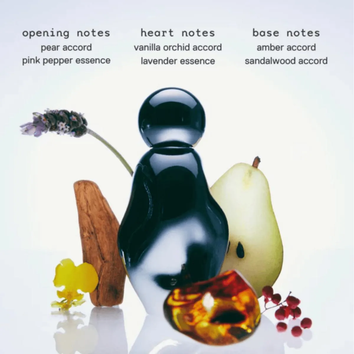 - Fragrância floral âmbar com notas sofisticadas de pera doce e pimenta rosa na abertura.