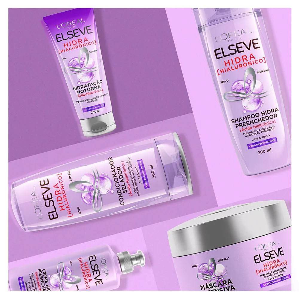 Para cuidado dos Cabelos com Elseve Hidra Hialurônico: Shampoo Preenchedor Elseve Hidra Hialurônco 400ml: especialmente desenvolvido com agentes condicionantes inteligentes, é capaz de promover ao mesmo tempo uma limpeza profunda e hidratação da raiz às pontas com resultados no primeiro uso.