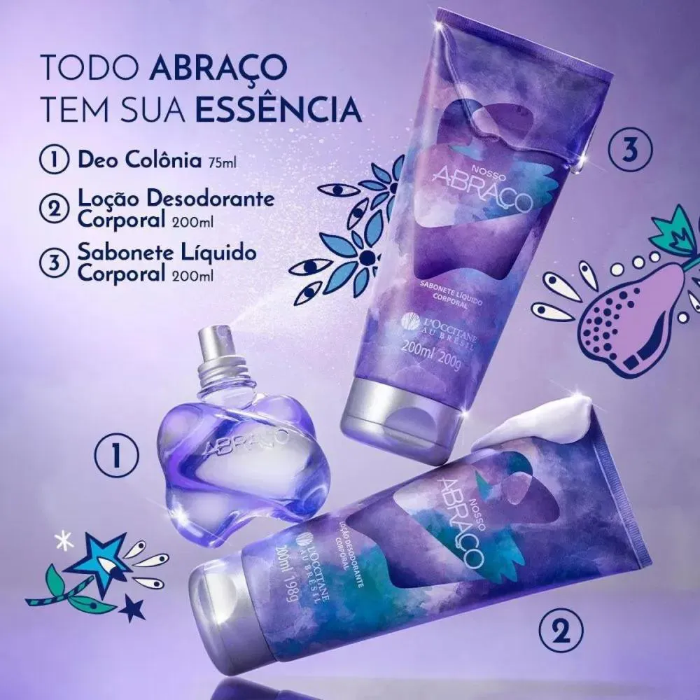 L'OCCITANE LOÇÃO DESODORANTE CORPORAL NOSSO ABRAÇO 200MLCuide da sua pele com a L'Occitane Loção Desodorante Corporal Nosso Abraço. Esta loção oferece hidratação intensa por até 24 horas, deixando sua pele macia, com toque aveludado e delicadamente perfumado. Enriquecida com Cupuaçu, possui uma textura leve e de rápida absorção, facilitando a aplicação sem deixar a pele oleosaAlém disso, suas roupas exclusivas, inspiradas na neurociência do abraço, despertar sensações de conforto e bem-estar, transformando seu momento de autocuidado em uma experiência sensorialBenefícios :