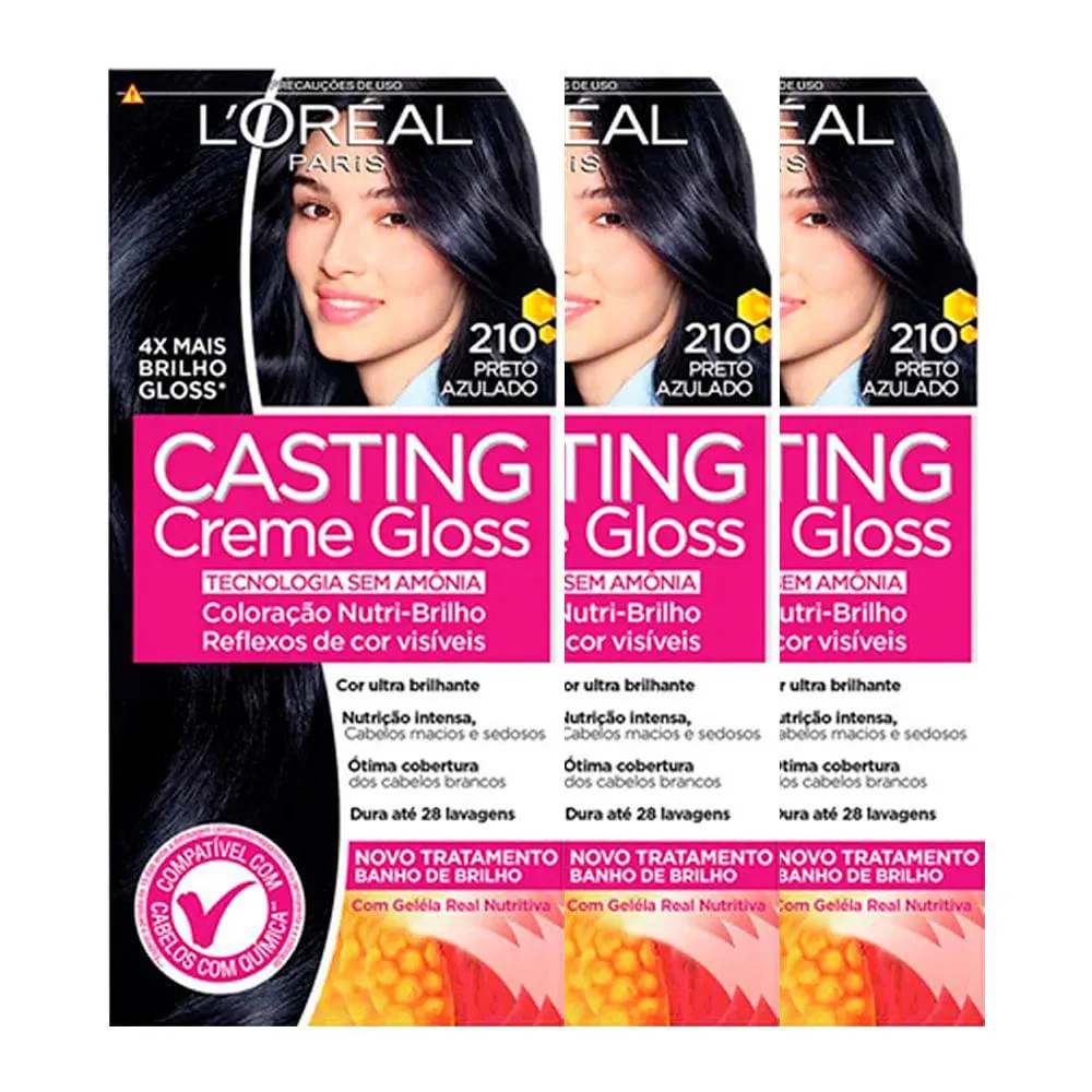 3 Coloração Casting Creme Gloss L'Oréal Paris - 210 Preto Azulado